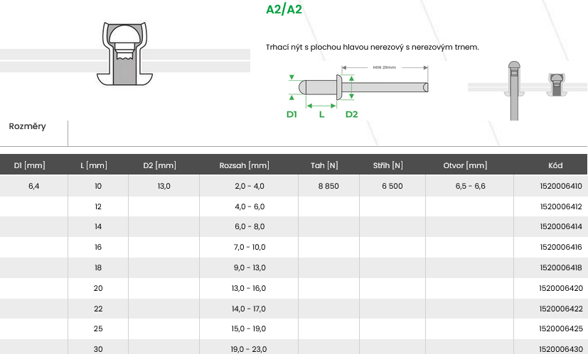 A2/A2 nerezový nýt, nerezový trn( nerez A2)
