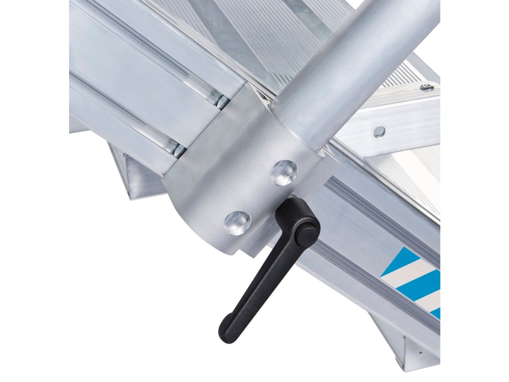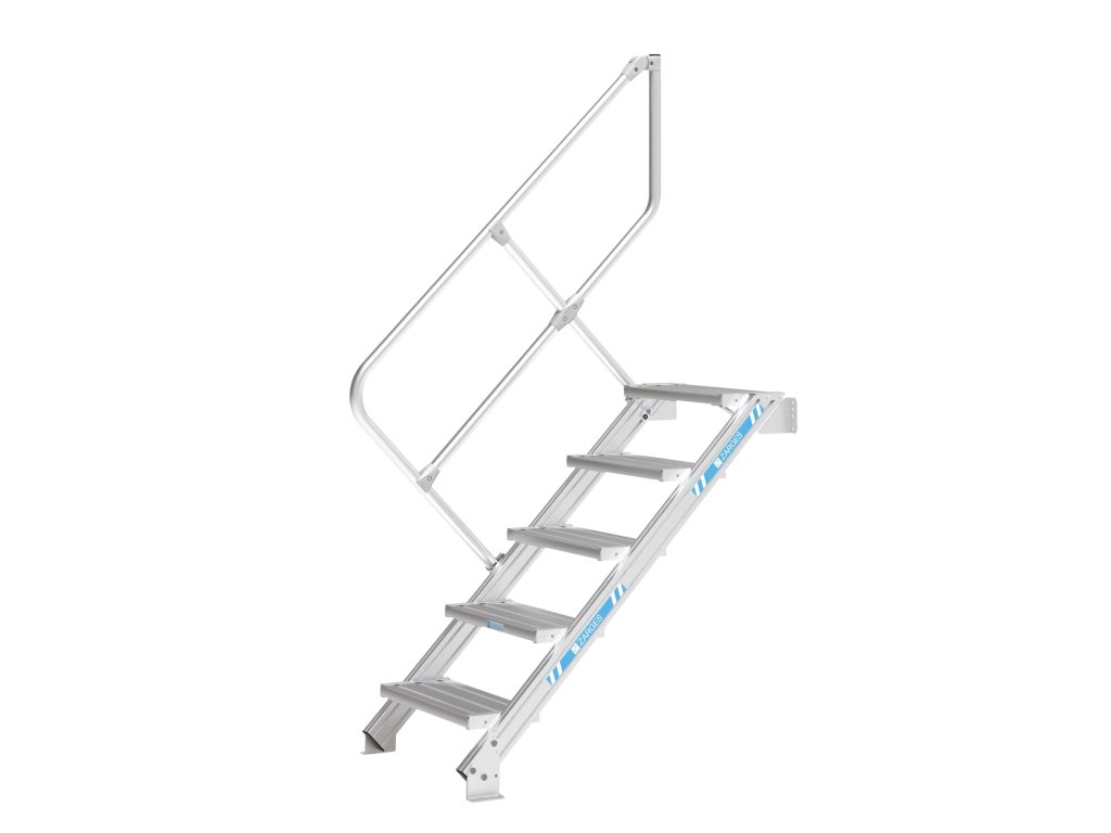 Různé sklony: 45° pro pohodlný výstup nebo 60° pro šetření místem Volitelná šířka stupňů 600, 800 nebo 1000 mm viz www.creaxess.cz Povrch stupňů sériově z rýhovaného al. plechu (R10) Volitelně také možnost volby ocelového roštu (R12) nebo děrovaného plechu (R13) viz www.creaxess.cz Maximální flexibilita díky odnímatelnému zábradlí viz www.creaxess.cz Nosné profily z hliníkových lisovaných profilů se šroubovacími kanály pro flexibilní montáž Snadná a rychlá montáž díky spojovacímu systému ZARGES s vysokým stupněm předmontování Na milimetr přesné provedení těchto schodů můžete sami konfigurovat na www.creaxess.cz Nosnost 300 kgDoplňkové parametry