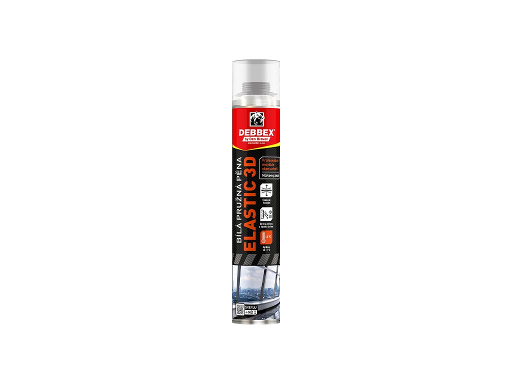 Pružná 3D pěna je jedno komponentní, víceúčelová PUR pěna, speciálně vyvinuta pro vyplňování spár s velkým dilatačním pohybem, objemovou změnou podkladu, s požadavkem na minimální propustnost vodní páry, vysokou pružnost a zvukovou izolaci. Vlastnosti- Vhodná kombinace s interiérovými a exteriérovými těsnicími okenními pásy;