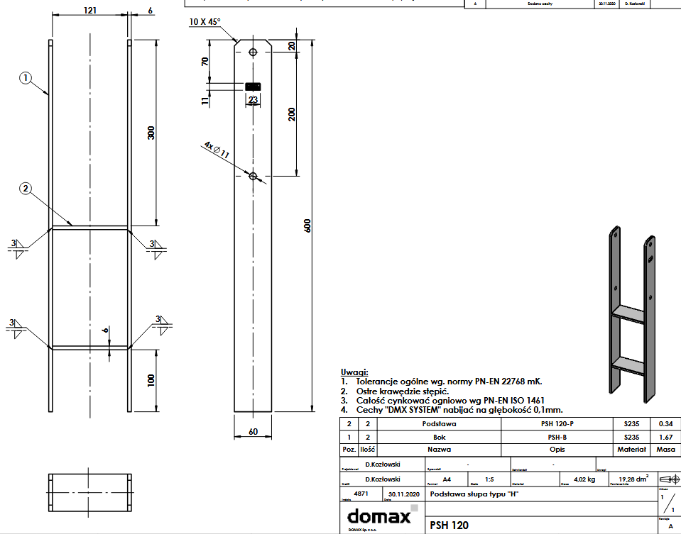 PSH 120 Patka sloupku 121x600x6,0 mm