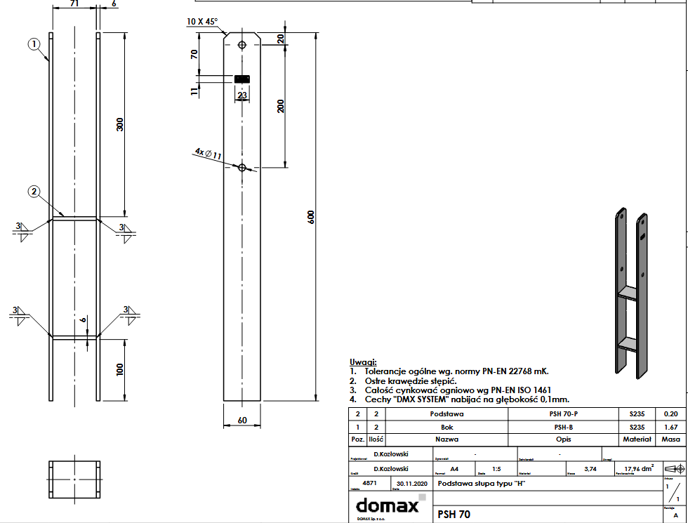 PSH 70 Patka sloupku 71x600x6,0 mm