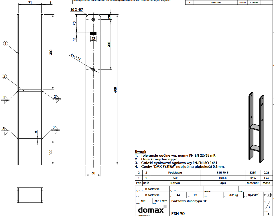 PSH 90 Patka sloupku 91x600x6,0 mm