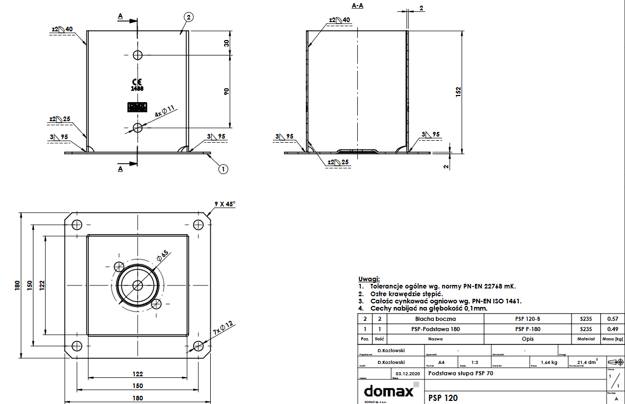 PSP 120 Patka sloupku C 121x180x2,0