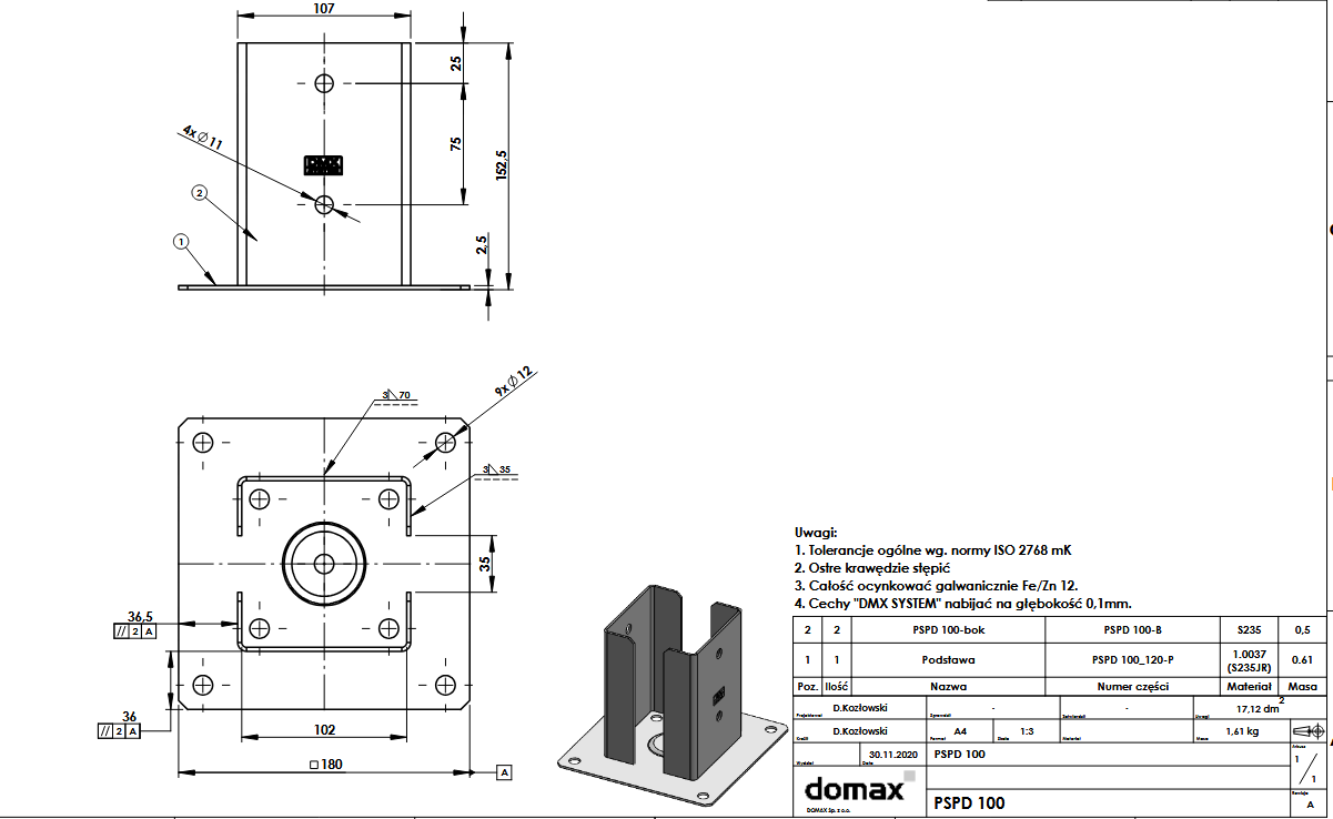 PSPD 100 Patka sloupku ZNZ 102x150x2,5