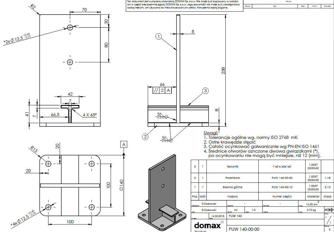 PUW 140 Patka sloupku ZNZ 140x250x8,0