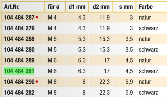 Varianta: Rozeta pro zápustné šrouby 90° M6, PA přírodní