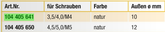 Varianta: Rozetová spodní konstrukce pro válcový šroub ø 3.5/4.0/M4 Polyethylen přírodní