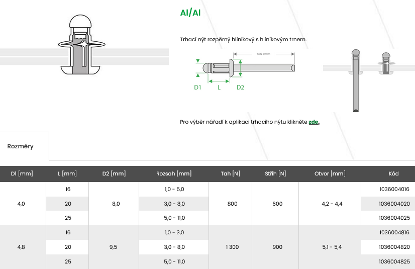Nerezové nýty, nýtovací matice + příslušenství
