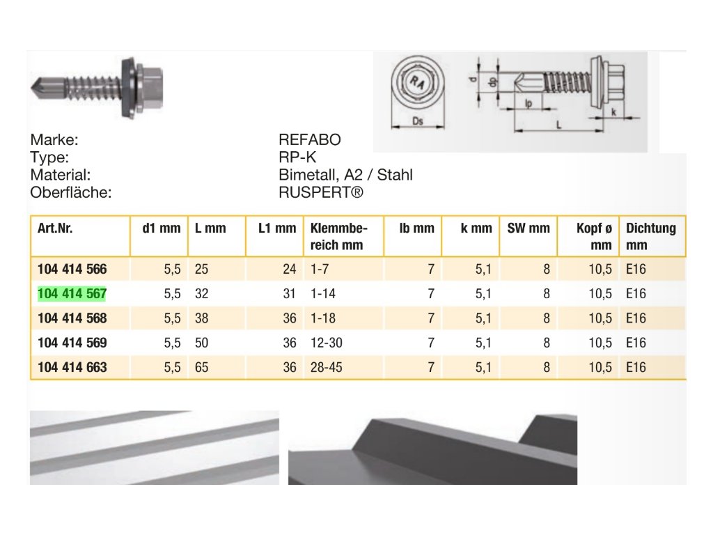 Varianta: RP-K, REFABO Plus samovrtný šroub 5.5x32/E16 Bi-Metall A2