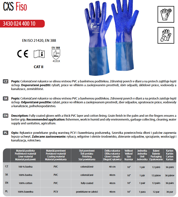 Rukavice CXS FISO, máčené v PVC, zdrsněný povrch, vel. 10