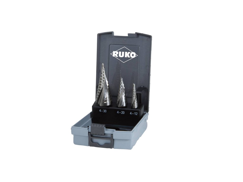 RUKO Sada stupňovitých vrtáků v plastové kazetě | 4-12, 4-20, 4-30 mm