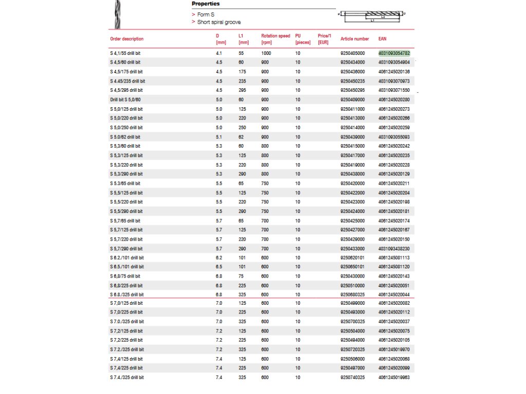• Speciální geometrie pro dosažení vysokého vrtacího výkonu při nízkém přítlaku