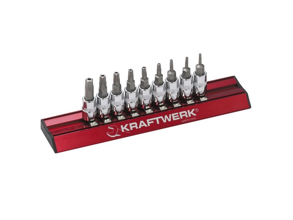 Sada nástavců MAGALU 1/4" v provedení: 5-TX s otvorem (5-hvězdička).- 9-dílné Magalu - vyrobeno z kvalitní chromvanadiové oceli - povrchová úprava: chrom - leštěný povrch nástavců - MAGALU-magnetická aluminiová kolejnice pro nástavce různých velikostí - lehká a přitom stabilní konstrukce kolejnice - nepodléhá korozi-kolejnice vyrobena z eloxovaného hliníku - kompaktní a přehledné uspořádání jednotlivých nástavců - nástavec snadno vyjmete potažením do strany - díky silnému magnetu v kolejnici nepotřebujete šrouby, snadno ji připevníte(např. k boku dílenského vozíku) - spodní strana kolejnice potažena protiskluzovou gumou, která brání poškrábání povrchu - DIN 3124 / ISO 2725-1Doplňkové parametry