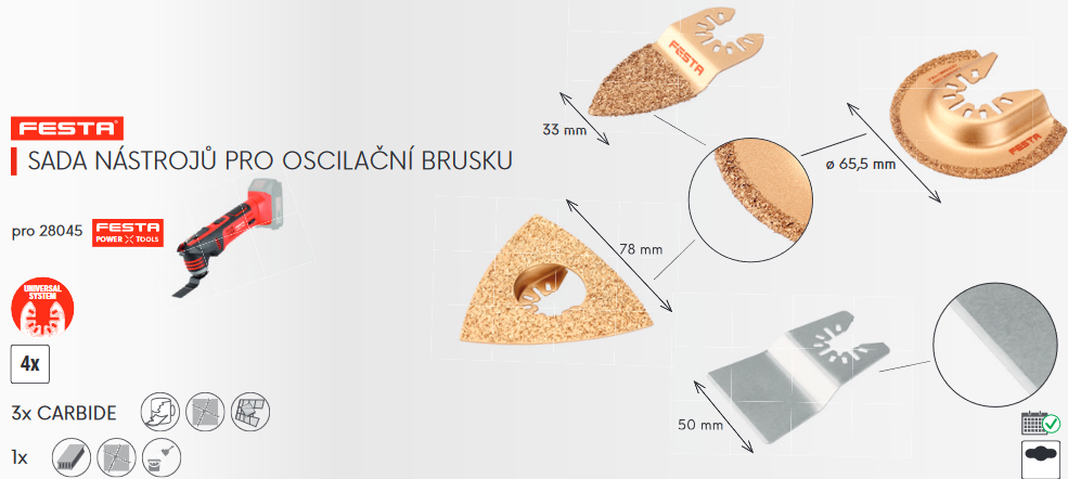 Sada nástrojů pro oscilační brusku FESTA 4ks