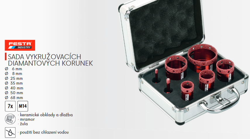 Sada vykružovacích diamantových korunek FESTA INDUSTRY