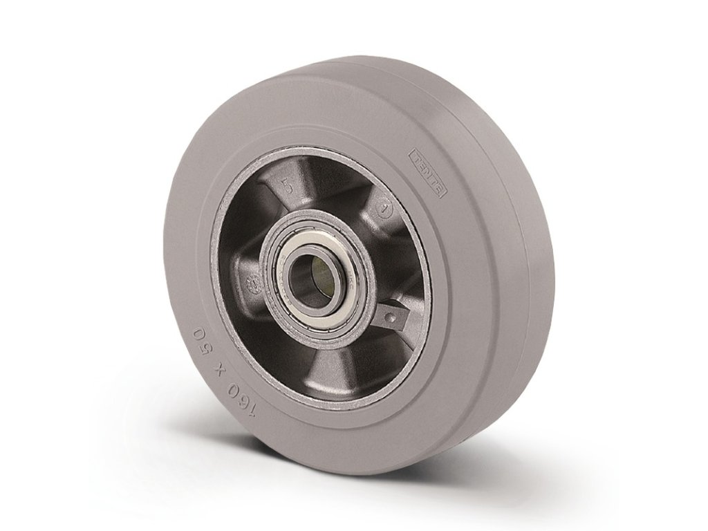 ESD Kolečko - Střed kolečka vyroben z hliníkové slitiny, Běhoun: černá elastická navulkanizovaná guma, šedá neznačkující, přesné kuličkové ložisko