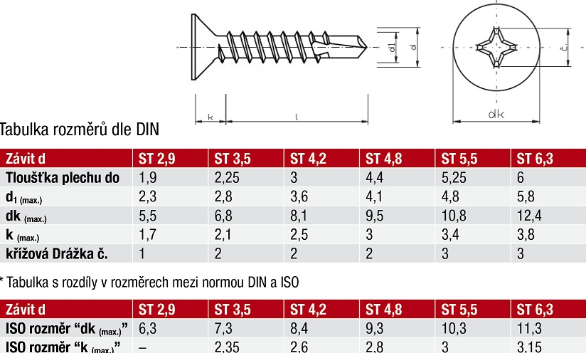 Varianta: Samovrtný šroub se zápustnou hlavou DIN7504O 2.9x 16 TX10, pozink