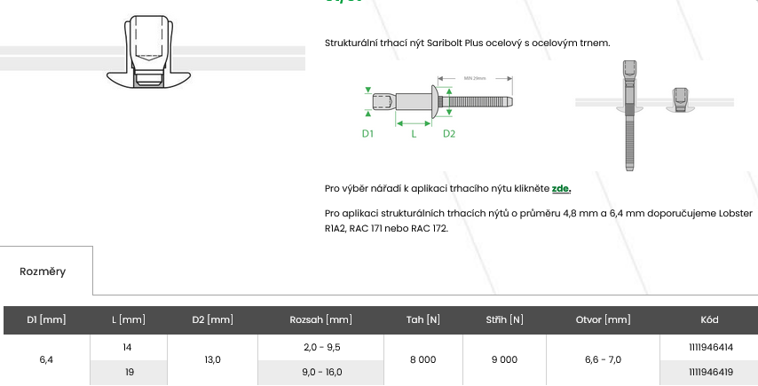 Strukturální trhací nýt Saribolt Plus zajišťuje vysokou pevnost ve střihu, v tahu a vysokou odolnost proti vibracím. Při jeho použití je zajištěna vodotěsnost spoje, jelikož je otvor v materiálu po zanýtování zcela vyplněn. Používá se hlavně při výrobě dopravních prostředků např. automobilů, autobusů, vlakových souprav a lanovek. Další využití je při výrobě kovových konstrukcí, jako jsou lešení, regály apod. Při jeho aplikaci není nutné použití speciální hubičky.