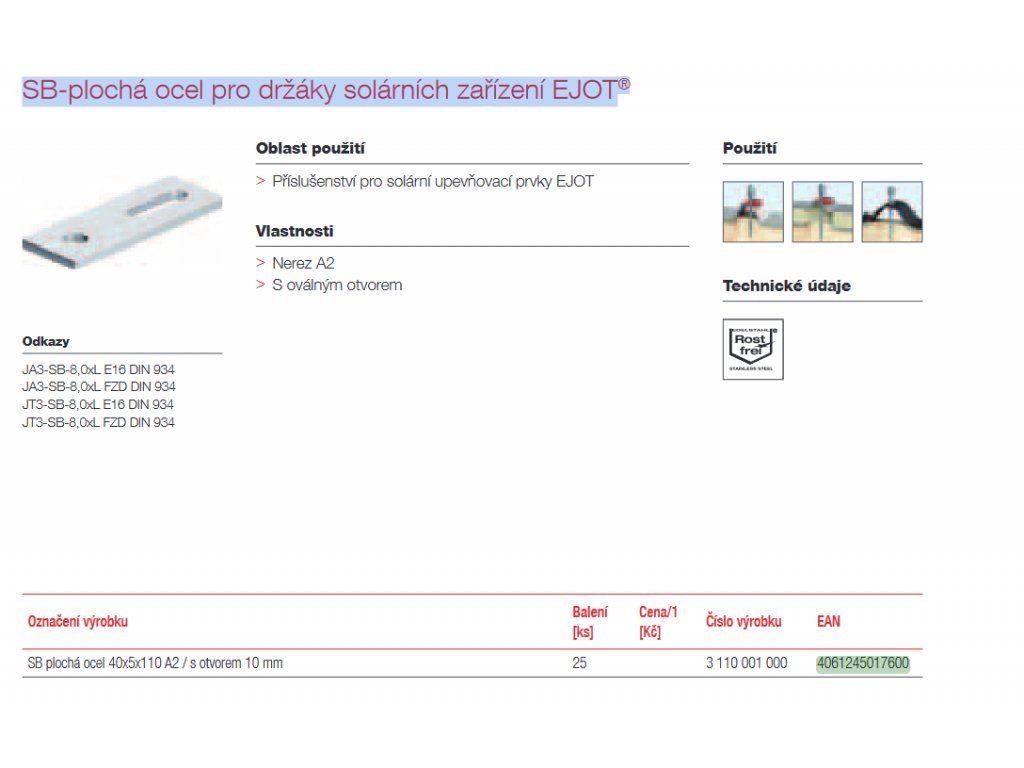 SB-plochá ocel pro držáky solárních zařízení EJOT® nerez 40x5x100 mm