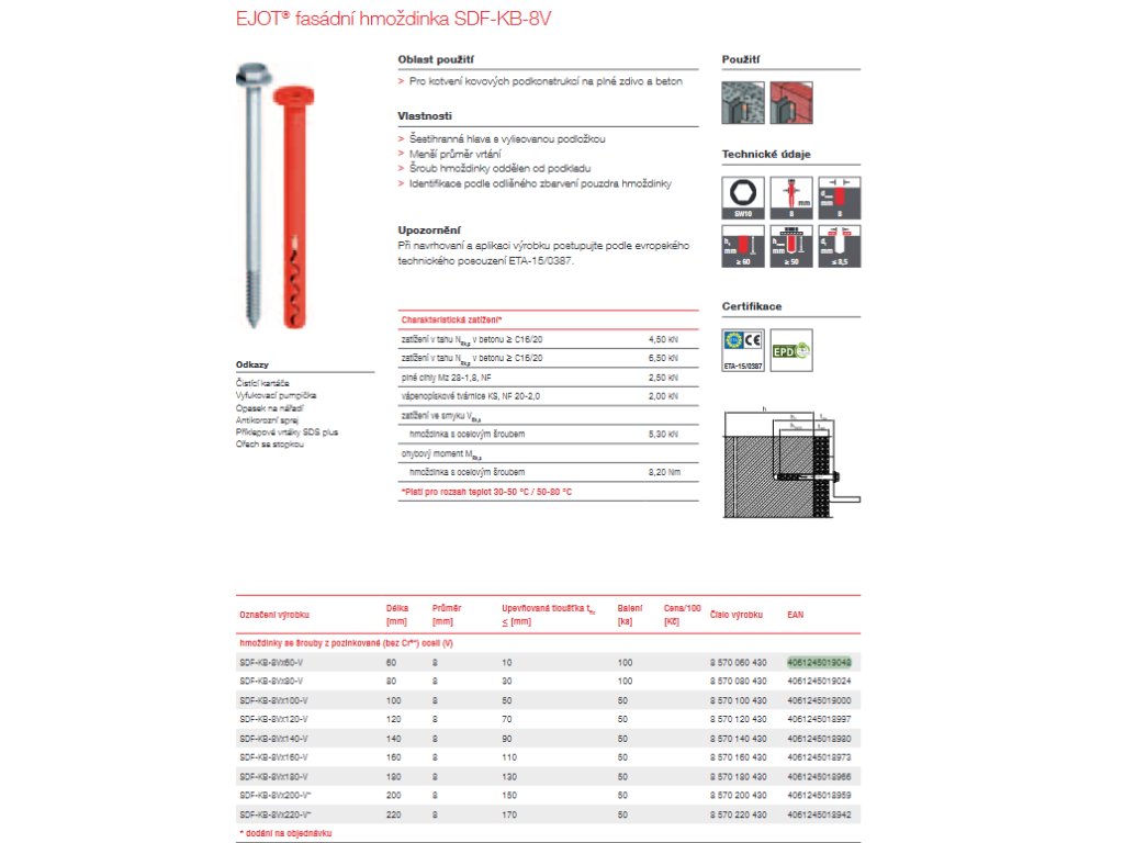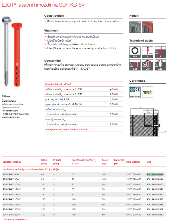 EJOT® fasádní hmoždinka SDF-KB-8V