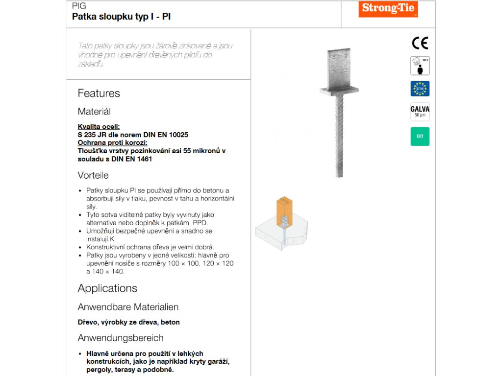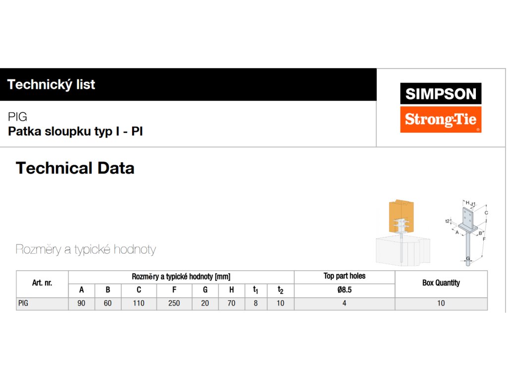 SIMPSON patka sloupku PIG -B žárový pozink, s certifikátem