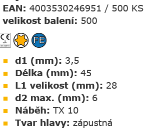 SPAX vrut pro montáž podlah 3.5x45 částečný závit Torx 10, Wirox stříbrný