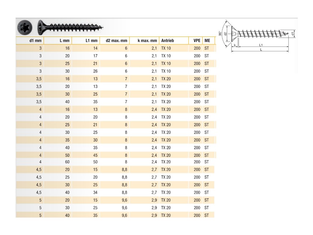 Varianta: SPAX zápustná hlava 3,0x 16 VG Torx 10 pozink černý s posouzením / malé balení