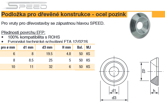 Varianta: SPPED podložky pro vruty se zápustnou hlavou na dřevěné konstrukce, pro ø 6 mm