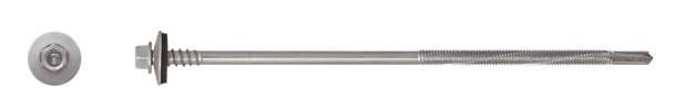 • Těsnicí podložka samovulkanizační EPDM. Odolná vůči teplotním rozdílům a UV záření. Speciální tvar podložky zajišťuje správné umístění těsnicího materiálu na vnější vrstvě upevňovaného materiálu, což zaručuje těsnost spoje.