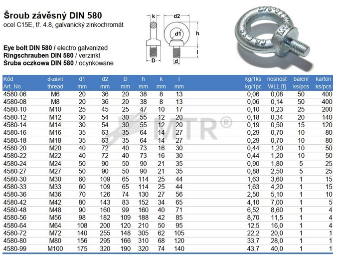 Šroub závěsný DIN 580 pozinkovaný MTR