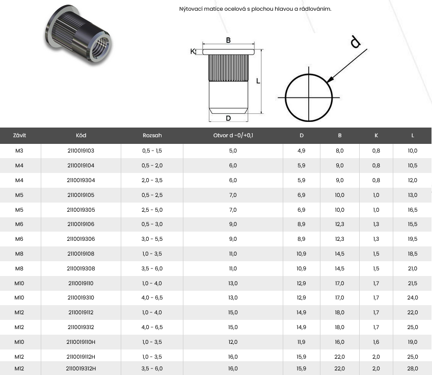 Předepsaný otvor: 13,0 - 13,1mmRozsah použití: 1,0 - 3,5mm