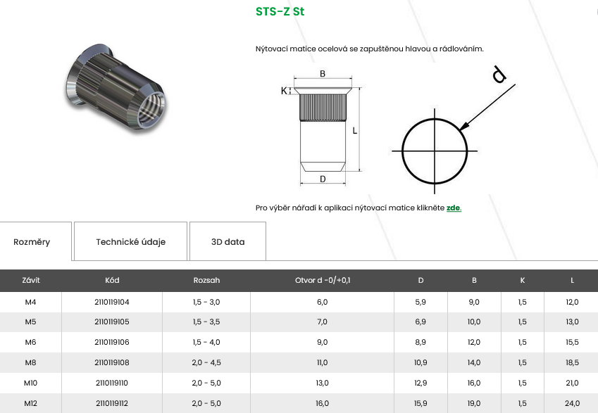 Předepsaný otvor: 13,0 - 13,1mmRozsah použití: 2,0 - 5,0mm
