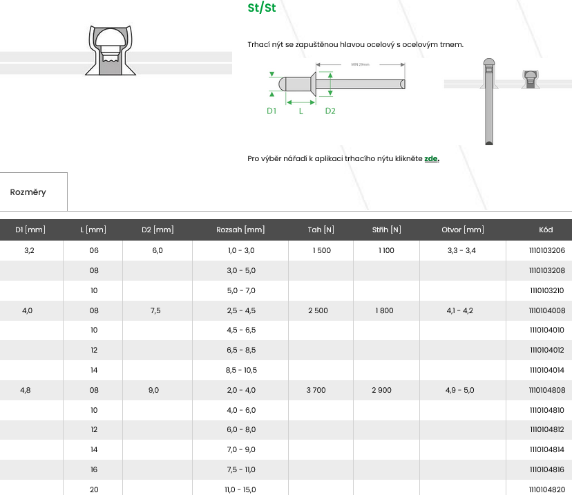 Trhací nýt SARIV St/St 3,2x08 ZH