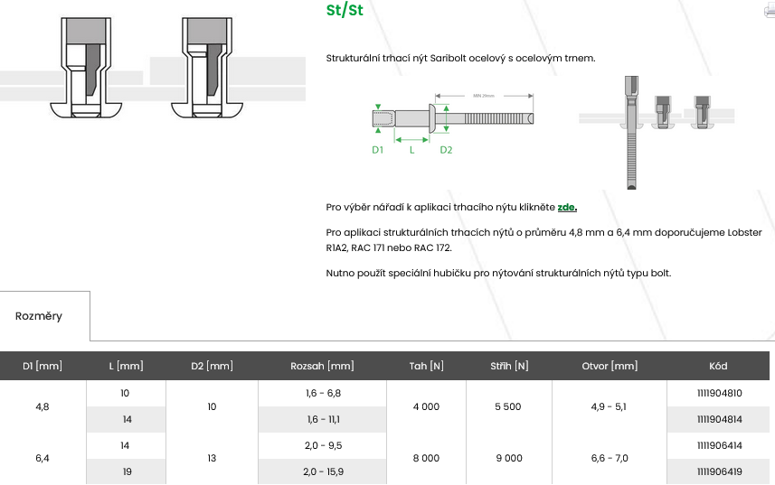 Trhací nýt SARIV St/St 4,8x14 SARIBOLT