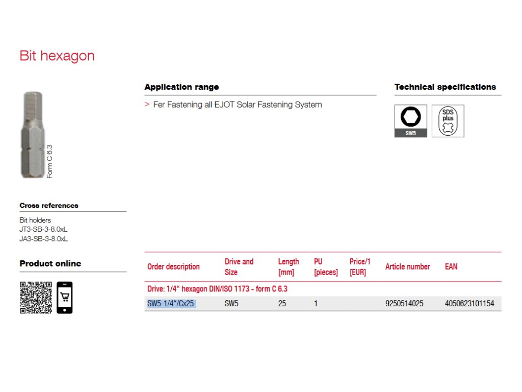 EJOT Bit šestihran - SW5-1/4“/Cx25