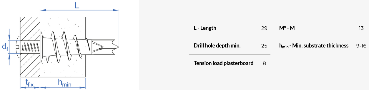 TAPLA ME kovová samovrtná kotva do sádrokartonu + šroub 4,2x32