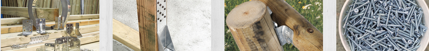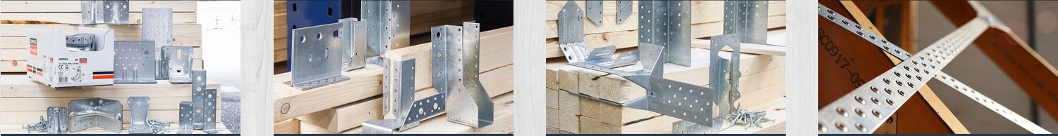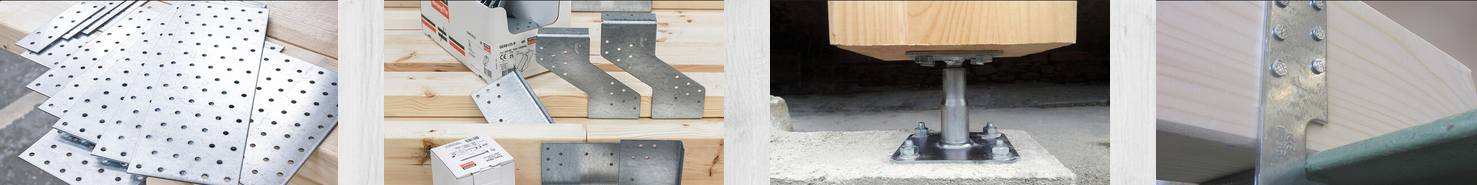 Patky nosníků, úhlové spojky, patky sloupů, táhla. Všechny dřevěné spojovací prvky pro nosné dřevěné konstrukce.