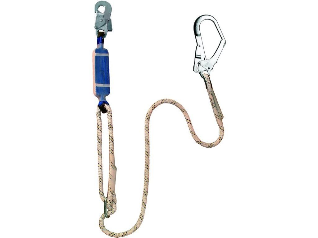 Tlumič pádu, konstrukce: - tlumič pádu (z 32 mm širokého polyamidového popruhu), na obou koncích vybaven upevňovacími smyčkami, - polyamidové lano LB 100 o průměru 12 mm s našitými smyčkami, z nichž jedna je nastavitelná pomocí kovové nastavitelné spony, - 1x ocelová karabina AZ 002 a 1x ocelová karabina AZ 022.Doplňkové parametry