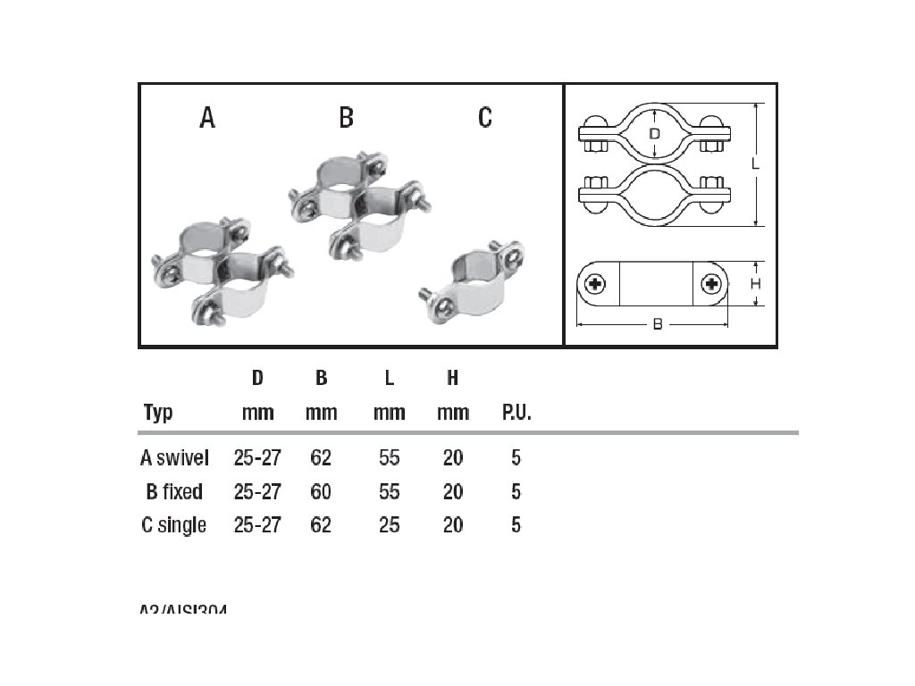 Varianta: Trubková svorka dvojitá rozdělená pro D= 22-30mm, A2