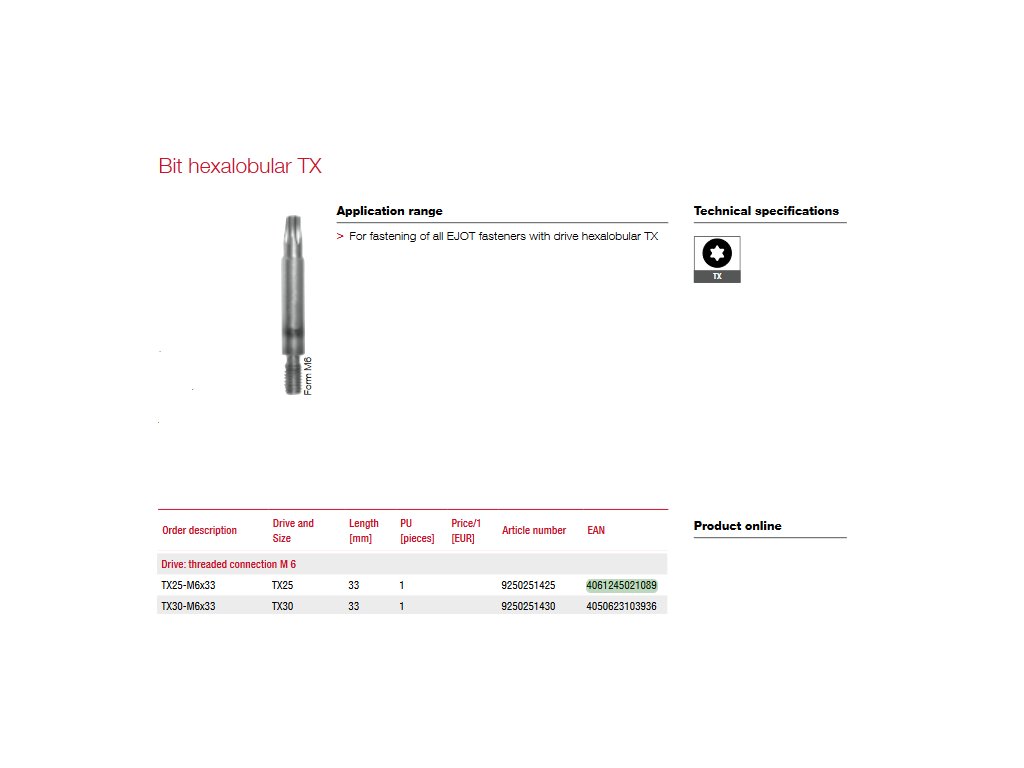 EJOT BIT vnitřní Torx Form M 6 - M6x33