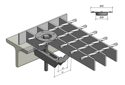 Úchyt k podlahovým roštům B133K - DIN 24537, pozink (3 komponenty - s talířem)