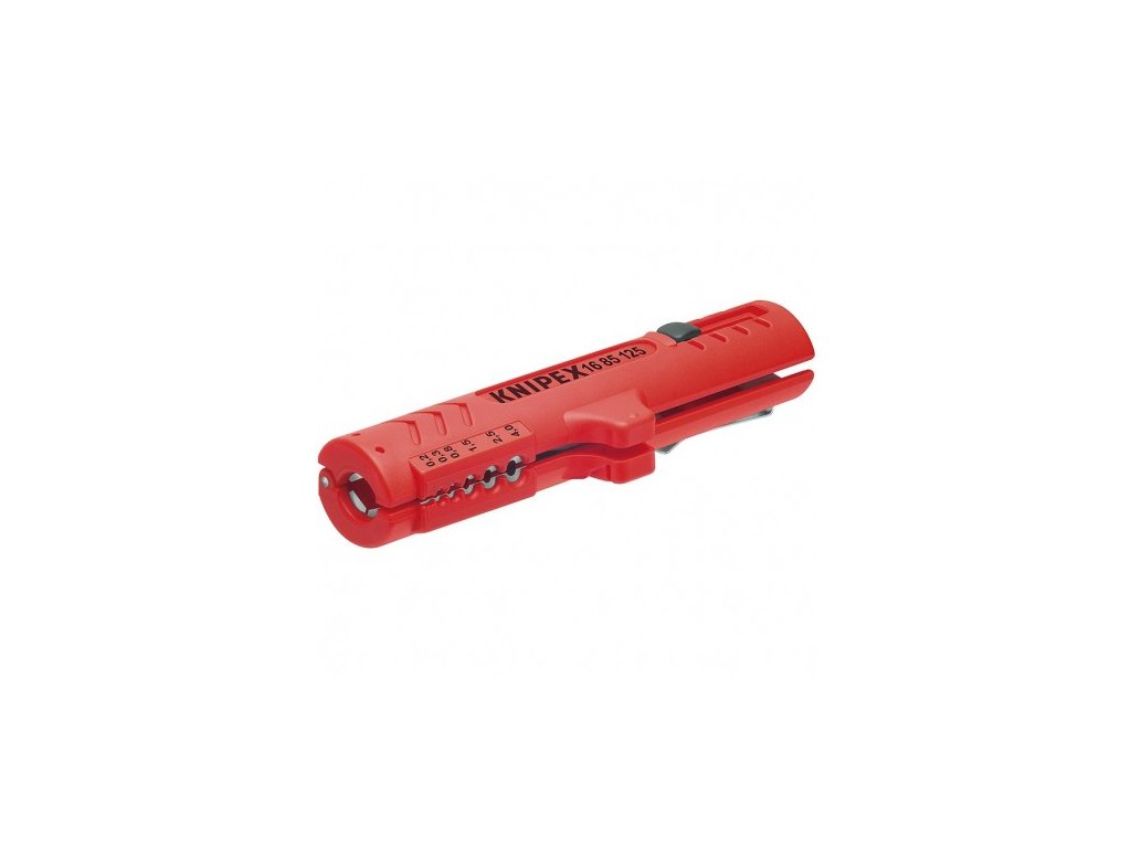 16 85 125SB Univerzální odstraňovač plášťůVhodné k odstraňování plášťů a odizolování všech běžných kabelů kruhového průřezu a kabelů do vlhkého prostředí od O 8,0 do 13,0 mm (např. kabel NYM 3 x 1,5 mm2 do 5 x 2,5 mm2) Také pro použití v krabicových odbočnicích a skříňkách rozdělovače Dvoudílný otevírací nástroj pro odizolování S otevírací pružinou a blokovací západkou Aretace v uzavřené poloze Těleso: plast, vyztužen optickými vlákny Model: Doplňkový nůž pro podélné řezy Vnitřní vysunovatelný nůž Nástroj pro odizolování pro průřezy 0,2 - 0,3 - 0,8 - 1,5 - 2,5 - 4,0 mm2 Hodnoty odizolování: 8,0 - 13,0 O mm Typy kabelů: Kabel kruhového průřezu, např.: 3 x 1,5 mm2 do 5 x 2,5 mm2 Hodnoty odizolování pro jednotlivé žíly: 0,2; 0,3; 0,8; 1,5; 2,5; 4,0 mm2 Délka: 125 mm Hmotnost: 67 g Podrobnější informace ke zboží naleznete v katalogu KNIPEX v sekci "Katalogy"Doplňkové parametry