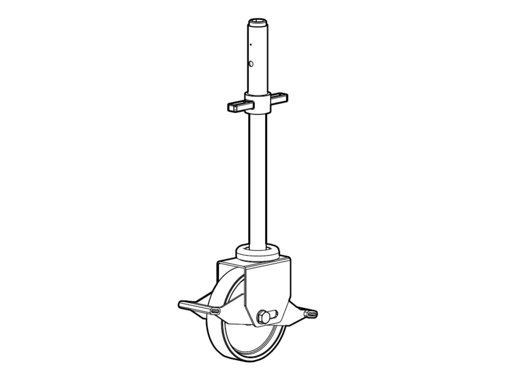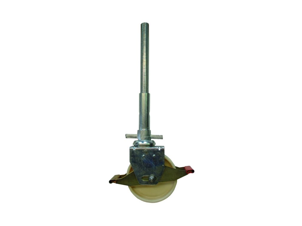 Kolečko z plastu Ø 200 mm nebo 125 mm Vřeteno pozinkovaná ocel Oddělený brzdící a odbržďovací mechanismus Rozsah nastavení: 30 cm Ceny jsou za 1 kusDoplňkové parametry