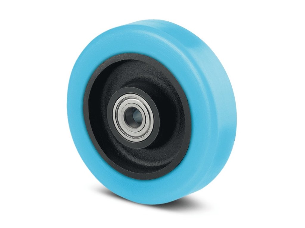 Střed kolečka vyroben z hliníku, běhoun: Polyuretan, přesné kuličkové ložisko, vhodné pro rychlosti až do 16 km/h