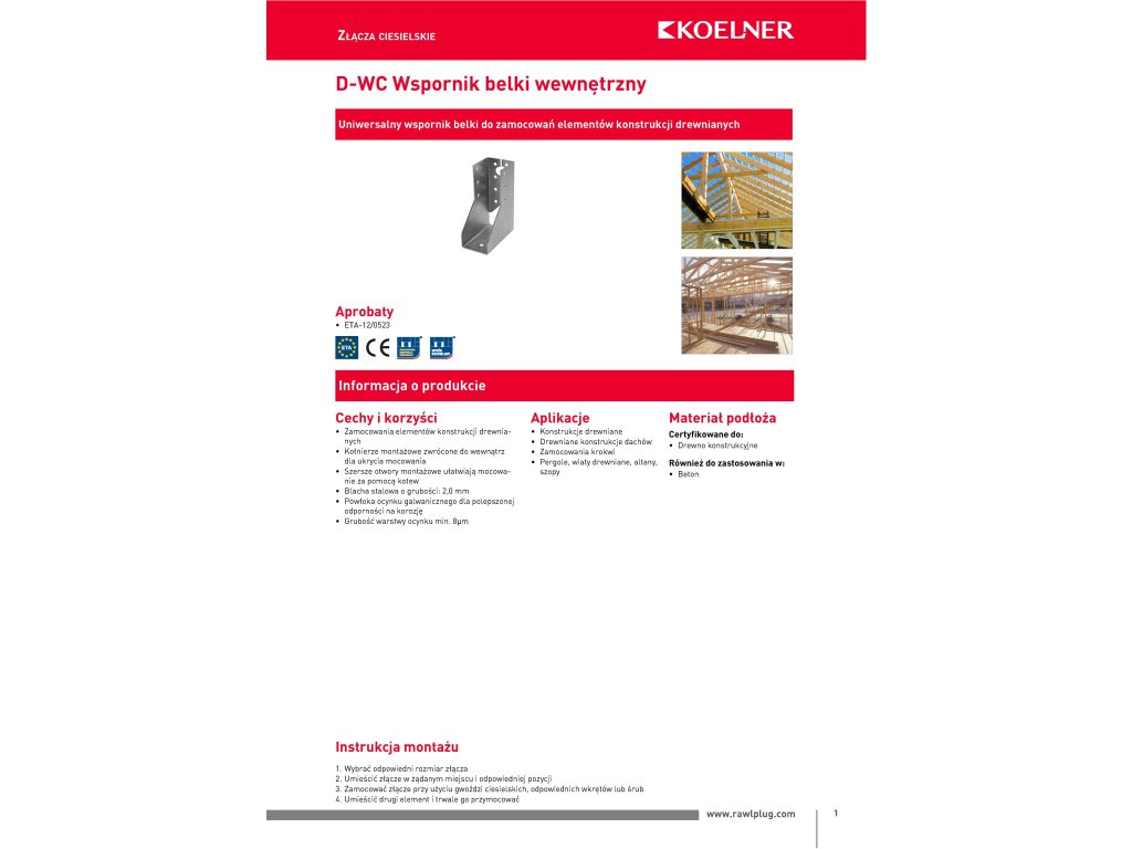 Vlastnosti a výhody Upevňovací prvky dřevěných konstrukcí Montážní příruby otočené dovnitř, aby se skrylo upevnění Širší montážní otvory usnadňují upevnění pomocí kotev Ocelový plech, tloušťka: 2,0 mm Galvanicky pozinkovaný povlak pro lepší odolnost proti korozi Tloušťka zinkové vrstvy min. 8 um