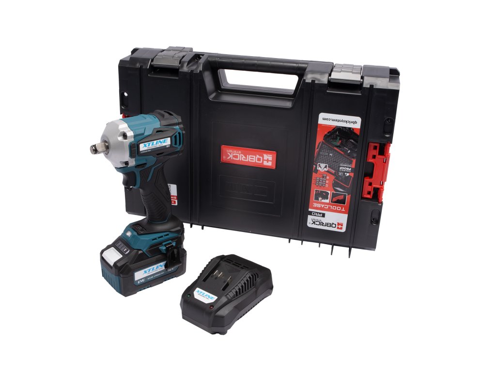 XTLINE Aku rázový utahovák na 1/2" hlavice bezuhlíkový 18 V, 400 Nm + baterie 5.0 Ah + nabíječka 3.5 A + box