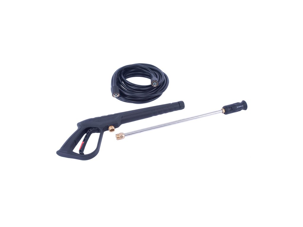 | Součást balení: | 5 m přívodní kabel, 8 m vysokotlaká hadice, stříkací pistole s nastavitelnou tryskou |