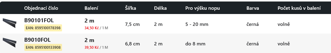 Varianta: Zakončovací profil pro nopové fólie, 2 m x 7,5 cm, černá, Barva: černá, rozměry: 2 m x 7,5 cm