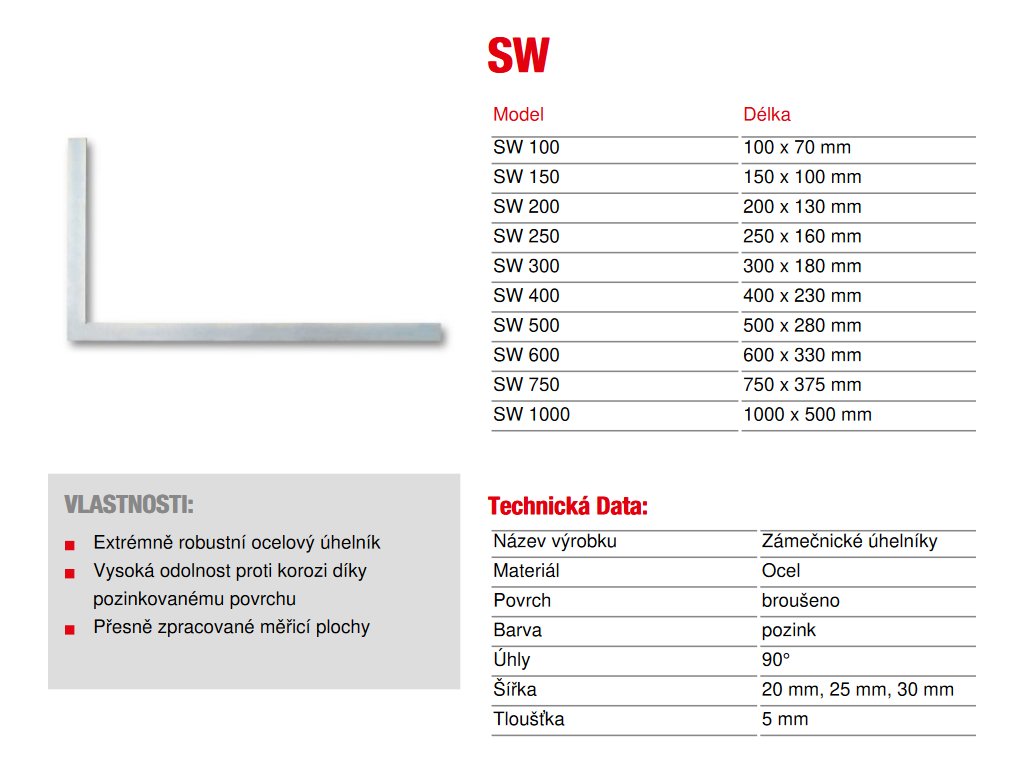 Zámečnické úhelníky, SW 600, délka 600 mm, SOLA