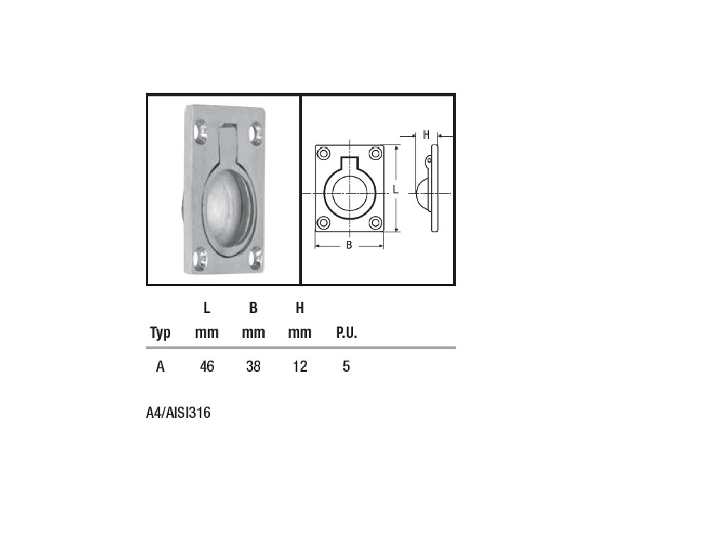Varianta: Zapuštěný zvedací kKroužek, litý, leštěný WM8241 - 48 X 38 X 12 mm, nerez A4 - AISI 316